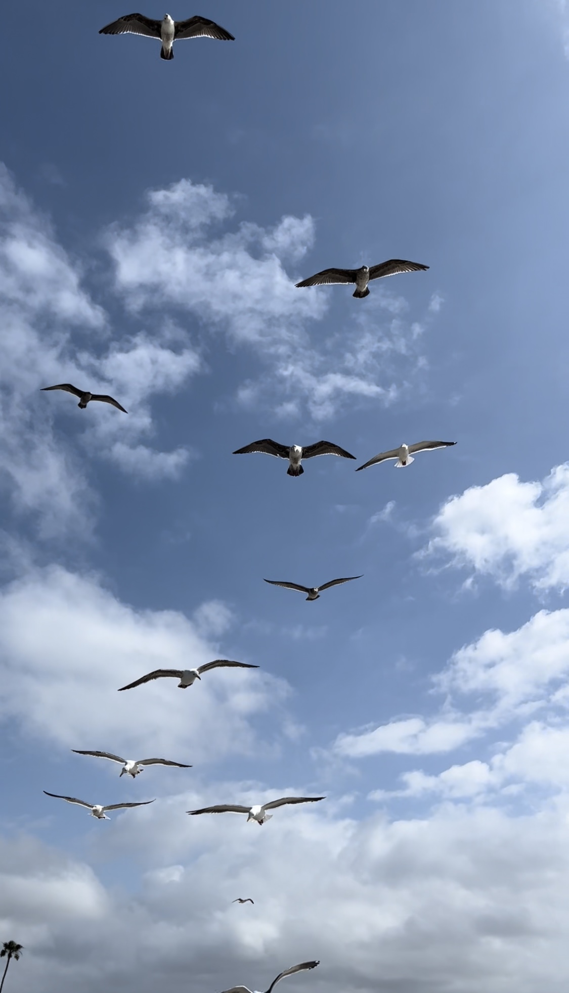 먹으려고 쫓아오는 갈매기들이 한두 마리가 아니라서